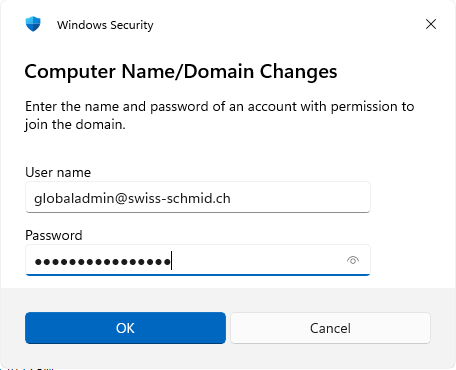 Fenster "Windows Security - Computer Name/Domain Changes"